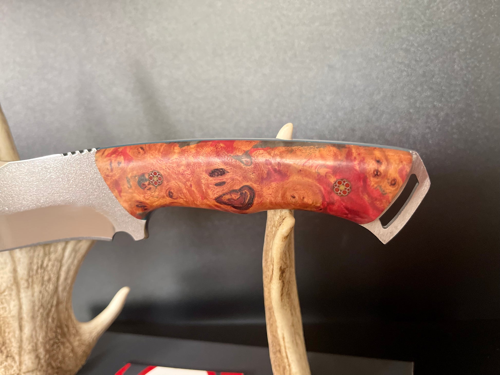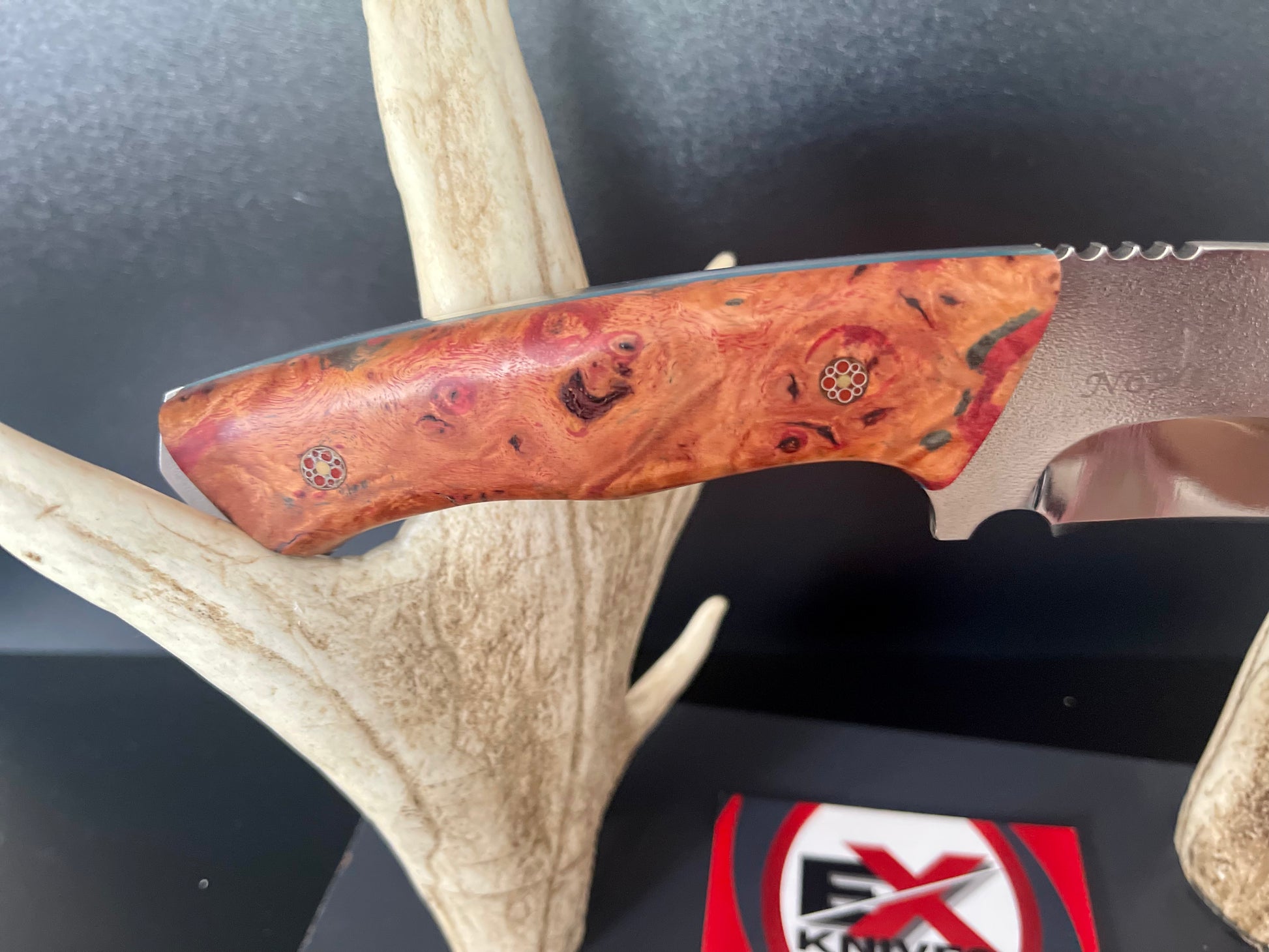 Handle stabilised wood with mosaic pins